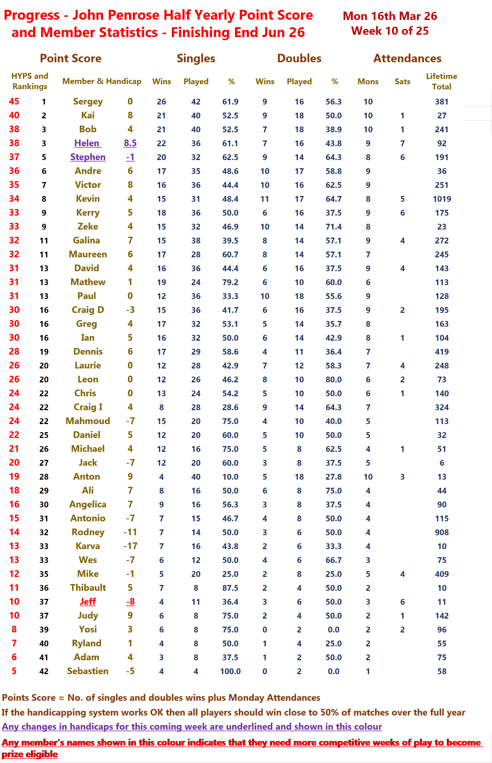 Member Handicaps